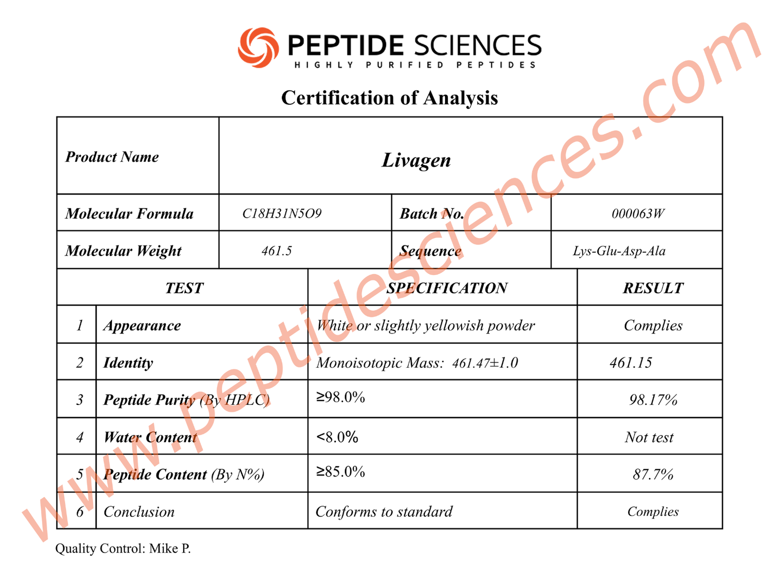 Verified 99%+ Purity: Every 20mg vial of Livagen is tested via HPLC-MS to ensure industry-leading quality and sequence accuracy.